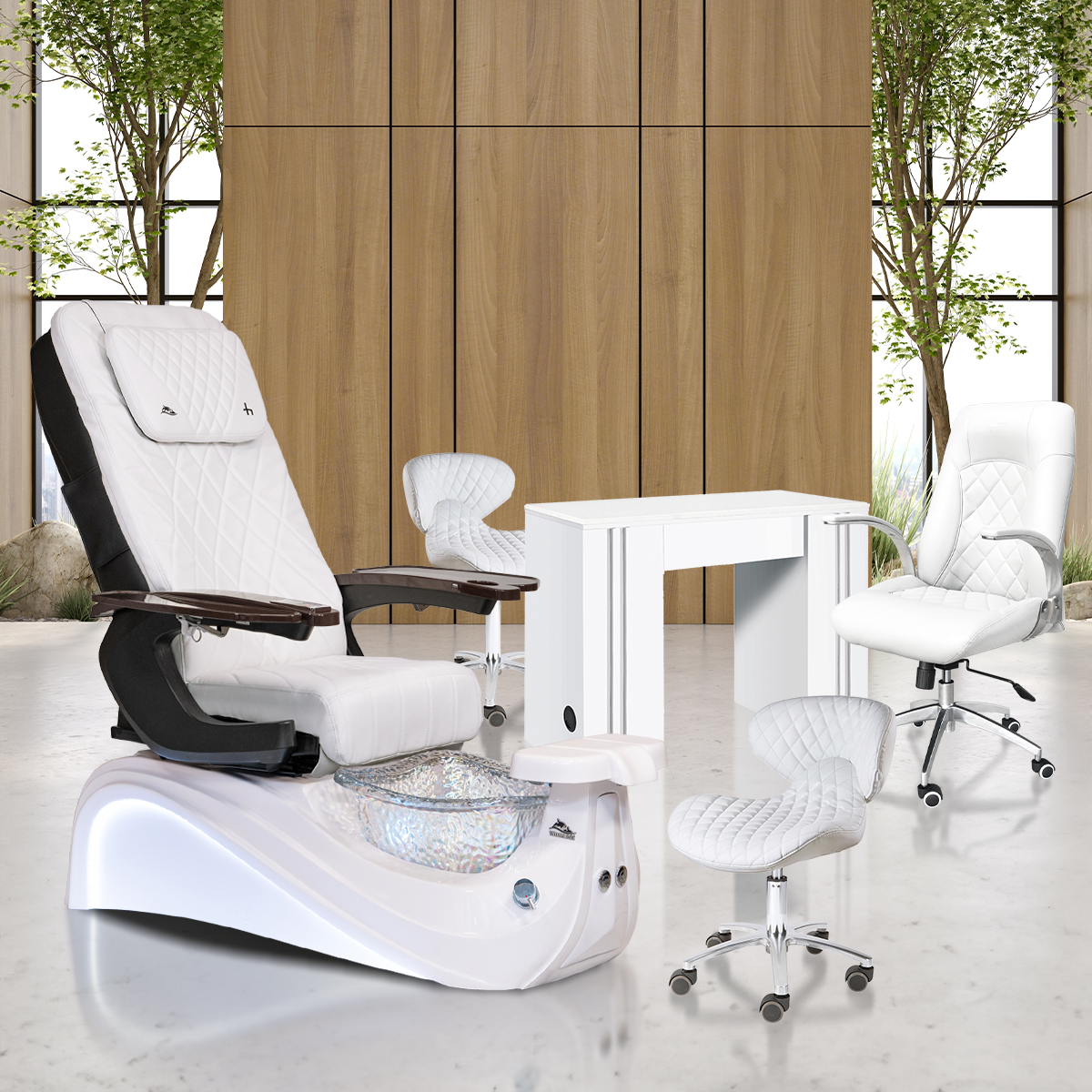 Shop for premium salon furniture sets at Whale Spa. Our curated sets feature the essential furniture pieces for your nail salon or spa. Each set includes timelessly designed pieces pre-selected in similar styles and finishes for extra convenience in designing your salon space.