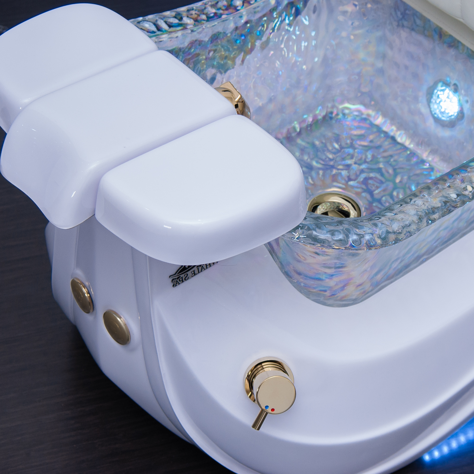 Upgrade your salon with the Victoria III Gold Edition Econo Line Pedicure Chair, where practicality meets a touch of luxury. Designed for durability with its acetone-resistant surfaces and sturdy glass basin, this chair maintains its sleek, professional appeal while offering long-term value. The addition of gold-finished control buttons introduces a subtle yet elegant touch, creating an elevated aesthetic without sacrificing affordability.